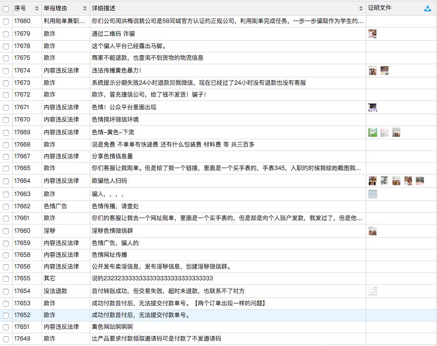 我们开始为表单添加了「举报」按钮。一年来,金数据处理了近两万起举报,仅上周就处理了 656 起。骗术五花八门。这些举报长什么样呢?以下摘自我们近期处理的举报: